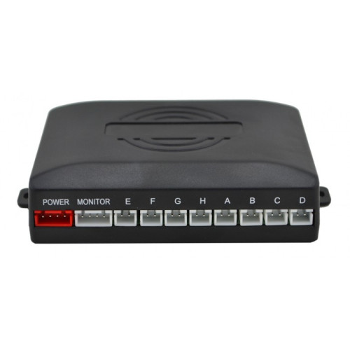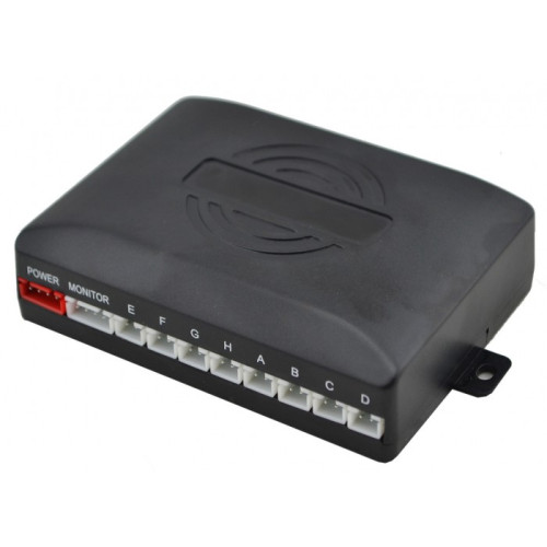 Парктроник – это не один механизм, а несколько приборов, соединенных между собой. В качестве сердца устройства, выступает распределительная коробка. Она имеет небольшой размер, поэтому может быть установлена без особых проблем в нужное место. К изделию крепится дисплей LCD, на котором четко видны данные. В том числе к распределительной коробке прикрепляются 8 датчиков. Именно они отвечают за парковку.