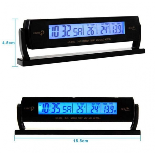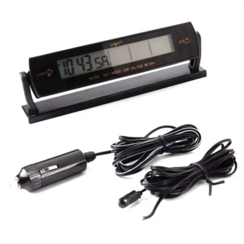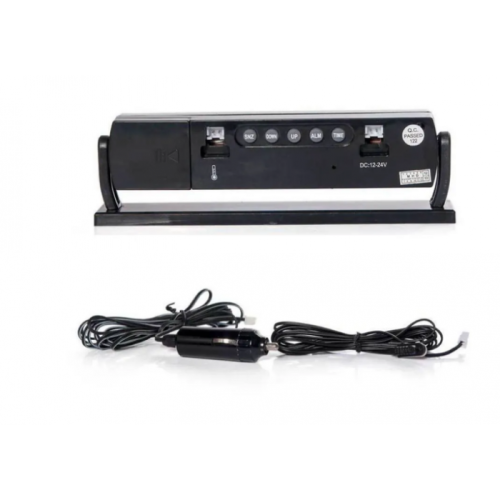 Компактные и удобные автомобильные часы с возможностью измерения температуры как в салоне так и на улице. Длинна провода датчика наружной температуры 3 метра.