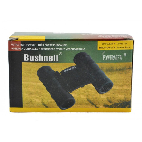 Бинокль Bushnell 10x25 имеет диаметр линз 25 мм, увеличивает в 10 раз, поле зрения: 100м x 1000м (ширина видимого поля x расстояние до объекта).