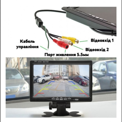 Автомобильный монитор для камеры заднего вида (поддерживает 2 камеры)