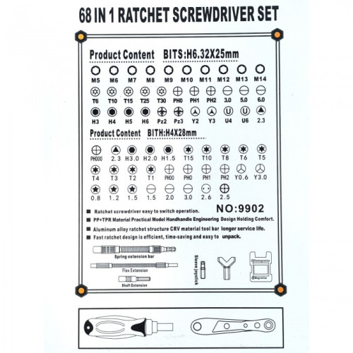 Набор отверток с храповым механизмом Torx RATCHET 68 в 1 – это незаменимый