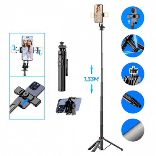 селфи-палка, штатив-тренога или вертикальный штатив. Включает поворотный