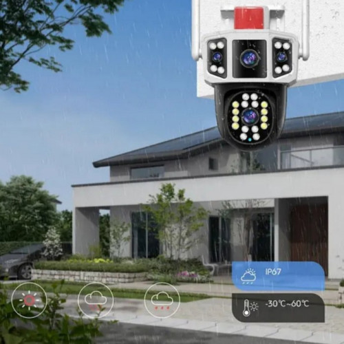 Камера наблюдения JE-2203 представляет собой передовое устройство для видеонаблюдения, оснащенное двумя камерами с разрешением 3 мегапикселя каждая. Она поддерживает беспроводное соединение с сетью WiFi, что позволяет передавать видео на смартфон или компьютер через приложение YOOSEE App. Камера обеспечивает поворот на 360° и наклон на 90°.